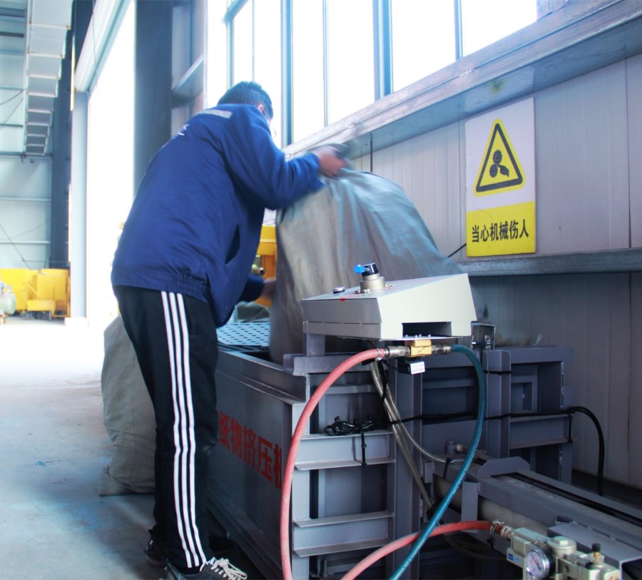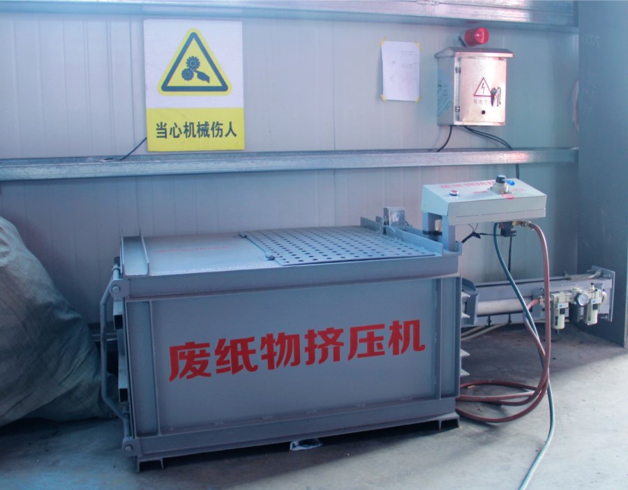 固废物挤压机投入使用后,原有占地10立方的纸张缩小到只有2-3立方左右。以前废物纸张用麻袋收集至少装6包,现在用挤压机压缩后只装了2~3包,减少了三分之二的固废物体积,既便于固废库房的存放管理,也便于固废物的清理运输,提高了车间环保管理作业质量,此项设计计划申报实用新型专利。