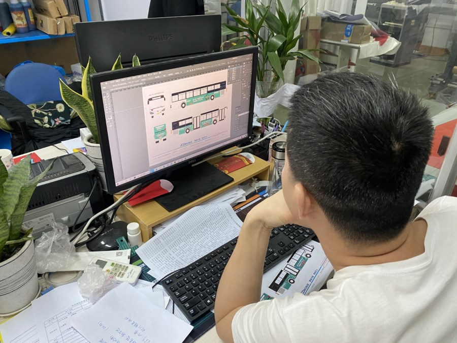 为了能更好地完成此项新业务,广告传媒事业部的工作人员积极研究与摸索,安排设计人员到同行去学习,提高相关专业技能。从追色打样,按车型放样,到输出质量,均有专人把控,为确保画面色彩精准,还专门请厂家技师为写真机校色,确保色彩还原准确。在最后的安装环节,设计人员主动要求到安装现场验证放图的准确性,以确保新业务的顺利开展,达到客户预期。这单业务完成后,设计人员藏超不由的发出感慨,看似简单的打印竟然隐藏着还有这么多的学问。