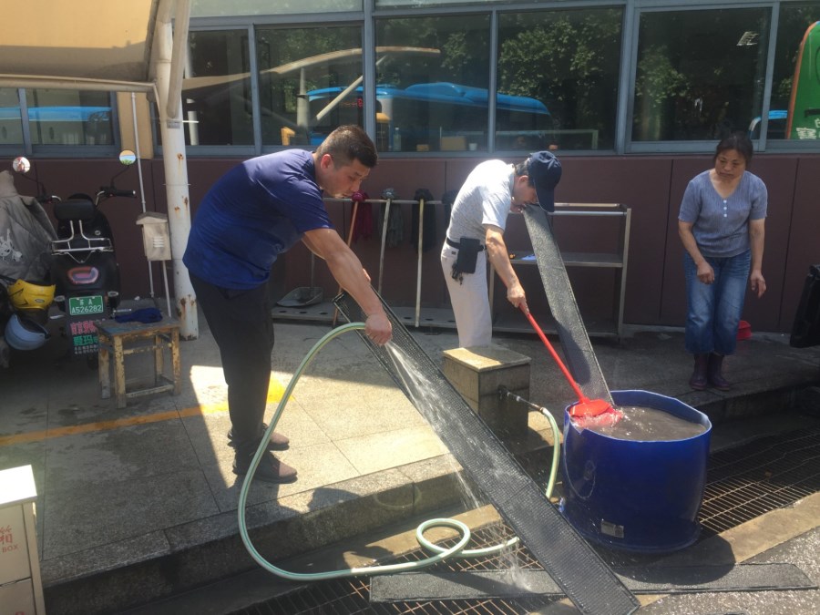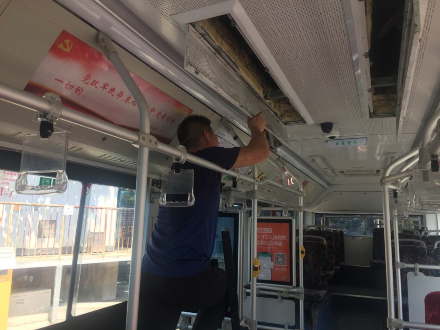 在汽车四队南堡公园场站,队长杨磊带头行动,带领车队管理人员清洗车辆空调滤网。大家有序分工,团结合作,有的负责拆卸和安装,有的负责清洗,他们顶着夏日的骄阳热火朝天地劳动着,一片片发黑的空调滤网在大家的共同努力下恢复了洁净,滤网洞眼里残留的水珠在阳光下闪闪发光,当干净的滤网被重新装上时,车厢空调吹出的风都清凉了许多,这阵清凉将伴随乘客一路。