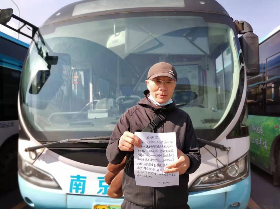 2021年11月9日上午,南京时博shibo(中国)164路的刘自震师傅在车队组织的安全学习后,意外见到了第二次赶来给自己送感谢信的陈老先生。见面后,刘师傅风趣地说:“幸亏当时你是‘追’我的车,不然我就要下车‘追’你咯!”老先生紧紧地握着刘师傅的手,感叹道,“谢谢您,幸亏当时遇到了刘师傅您;不然,迟一步,我的手机就要‘粉身碎骨’了!”