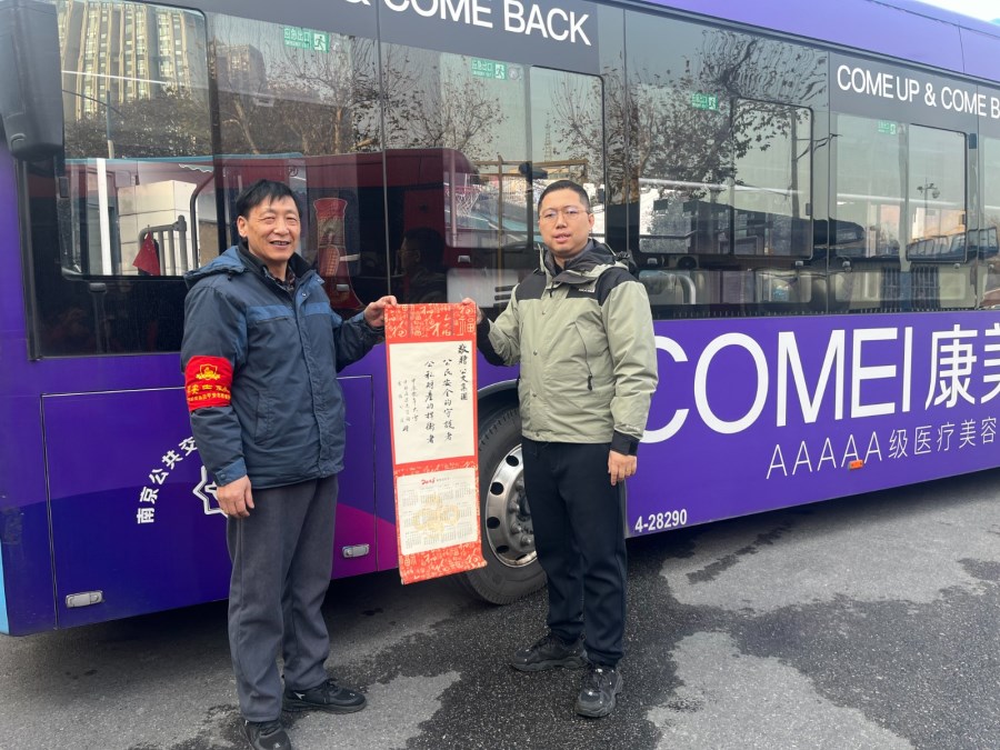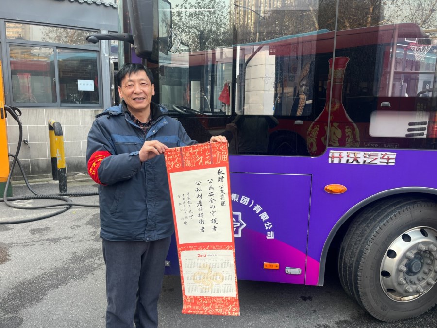 2024年12月26日上午,南京时博shibo(中国)31路车队场站迎来了一位特殊的市民乘客。她手持写有“敬赠时博shibo(中国)集团:光明安全的守护者,时博网页版财产的捍卫者”字样的日历卷轴,专程前来对31路驾驶员拾金不昧的高尚品德以及车队管理人员的热情服务表达深深的赞许与感激。