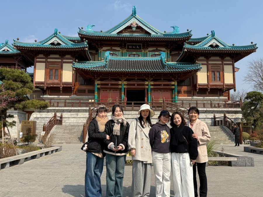 巷街里弄、青砖绿瓦、柳岸石堤。一步一景如痴如醉,历史的厚重感与江南的隽永秀丽迎面扑来。平日奔波忙碌于各个岗位,女职工们难得获得放松的机会,在这样一番春的景象中,呼吸着新鲜的空气,时而赞叹岸上春景,时而闭眼沐浴阳光。漫步小城,徜徉于花海中,或细细品味花香,或摆上几个POSE与美景合影,不愿浪费一丝春光。桃蹊、文心馆、邻曲巷、凌霄台、绿筱园,一步一江南。