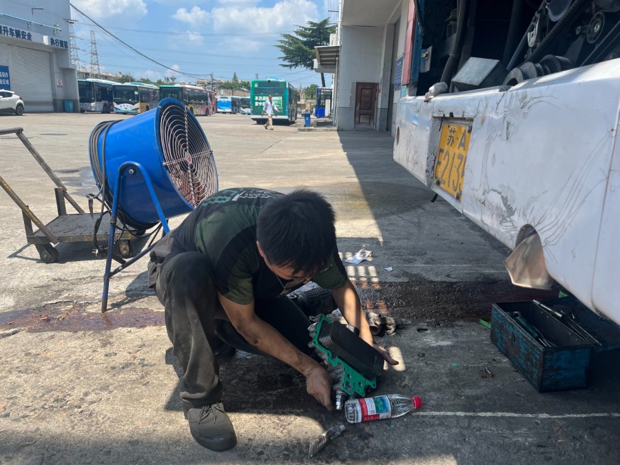 8月的骄阳如熔金倾泻,正午1点的空气灼烫似沸。第四客运分时博网页版保修车间尚未完全启动,大地在高温中蒸腾出晃眼的白。就在这片令人窒息的灼热中,机电工万福嘉的身影,正深陷于一台汽车引擎盖之下,更换散热器。