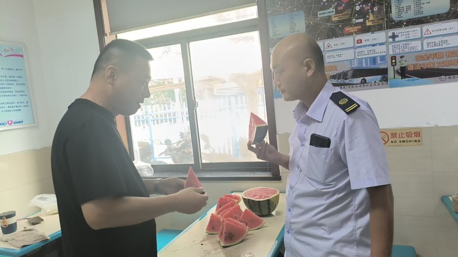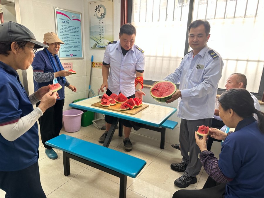西瓜作为解暑圣品,总能带给我们一丝清凉。各车队、车间、收银、场站、物供等一线职工吃在嘴里、甜在心上,喜悦之情溢于言表。