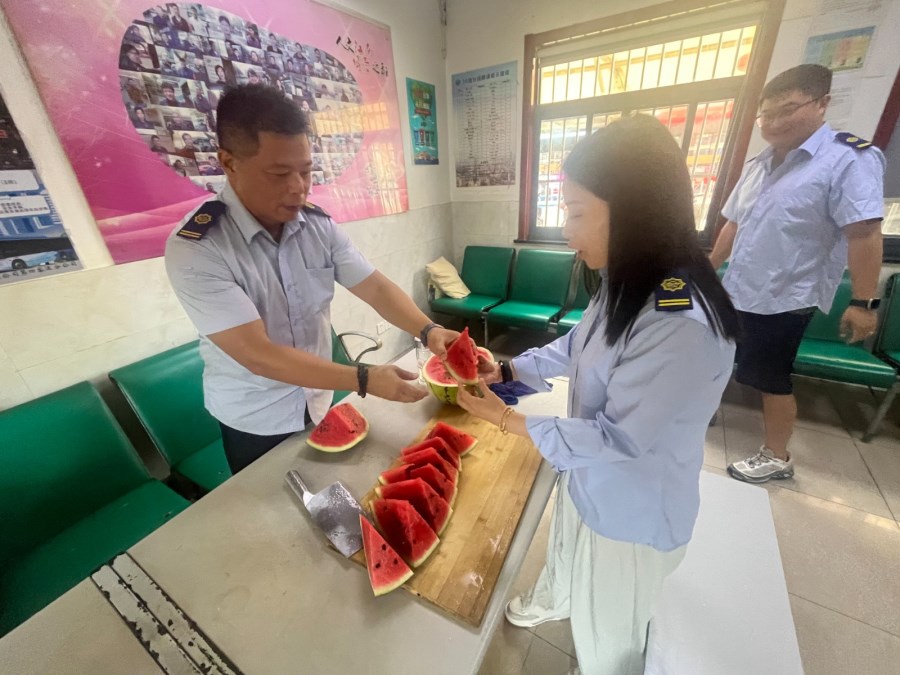 立秋送清凉,关爱暖人心——第四客运分时博网页版工会为一线职工送瓜解清凉