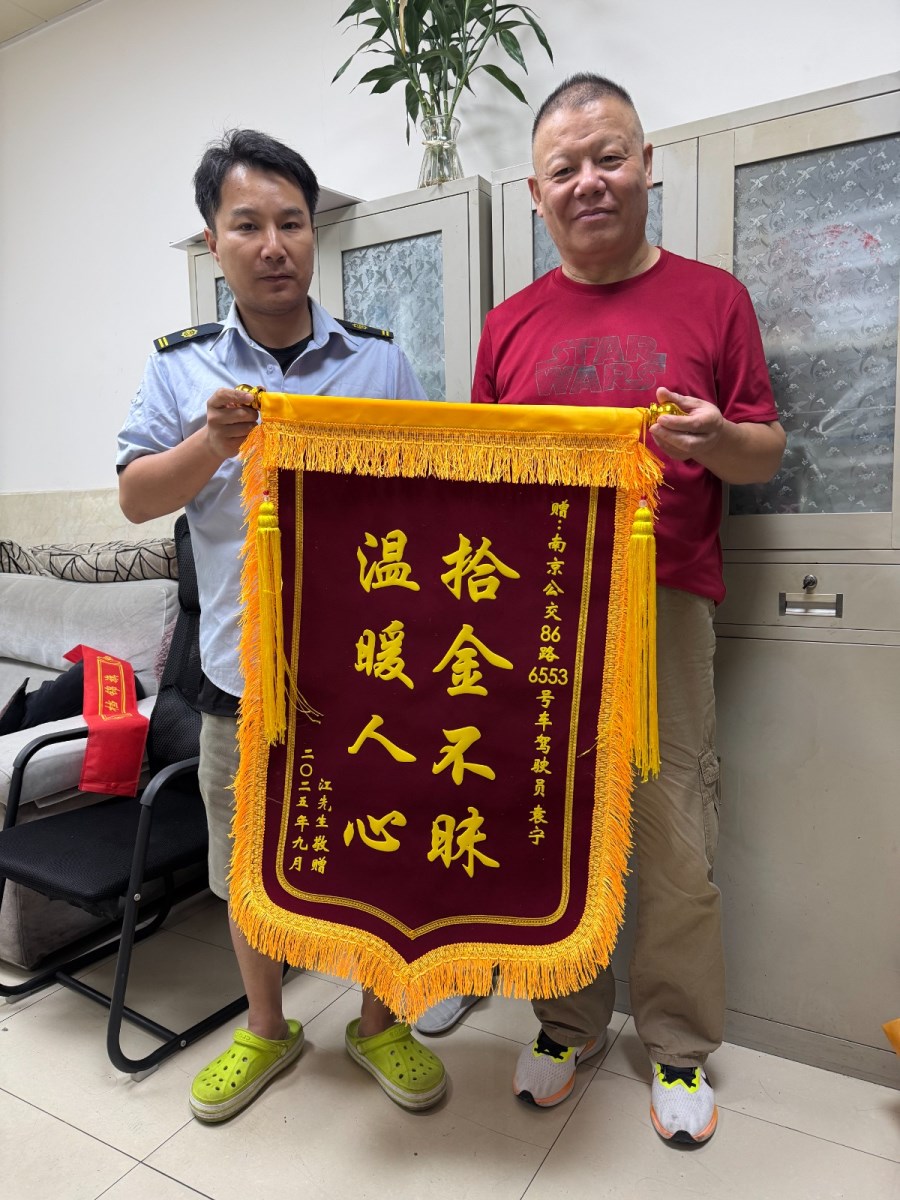 为了表达内心的感激之情,江先生特地制作了一面锦旗送到86路车队所在的汇景家园场站,亲手将锦旗送到驾驶员袁宁以及车队工作人员手中。江先生激动地说:“这些证件对我太重要了,真的非常感谢你们,你们的善举让我感受到了温暖。”袁宁则表示:“这都是我应该做的,每一位时博shibo(中国)驾驶员遇到这种情况都会这么做,能帮到乘客我也很开心。”