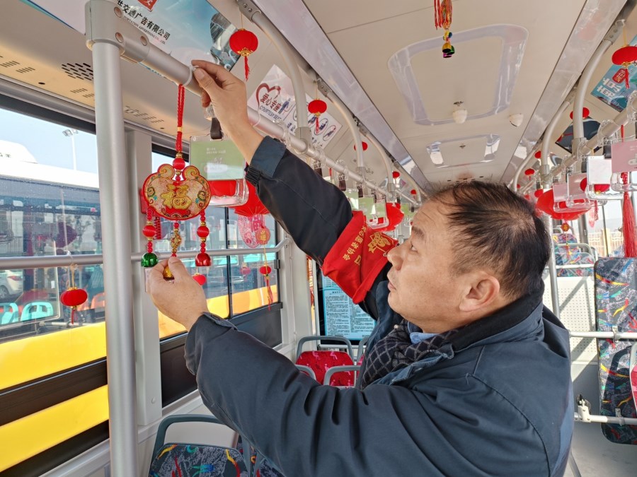 “新年新气象,我就是想给乘客营造一个温馨的乘车环境。”胡师傅说,为了迎接新年,他自掏腰包购买了一些装饰品对车厢进行装扮,让乘客感到节日的氛围,乘车的同时能有一个好心情。