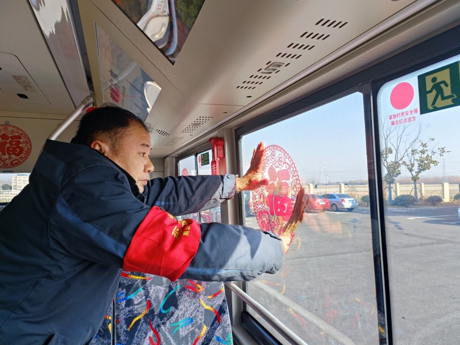 走进车厢,整洁明亮,车顶两排红灯笼让人眼前一亮,车窗玻璃上还张贴着福字窗花,整个车厢散发着浓浓的新年气息,十分喜庆。“车厢很漂亮,这些装饰使年味越来越浓了!”乘客纷纷点赞称好,一上车就能感受到浓浓的新年氛围,觉得我们632路驾驶员很细心,很有爱。