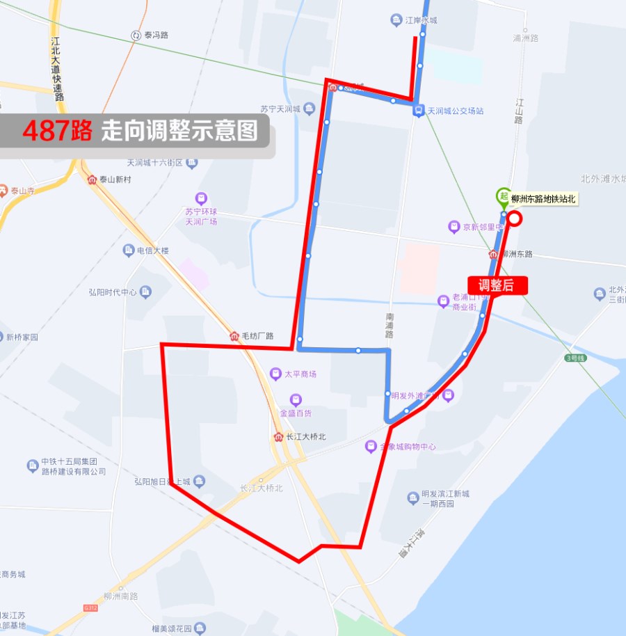 调整后首末站:泰冯路地铁站↔柳洲东路地铁站北。