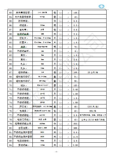 6. 供应商报价时如对清单中规格型号有疑问,请及时与南京轮渡有限时博网页版联系人联系,具体以轮渡时博网页版仓库实际材料为准。