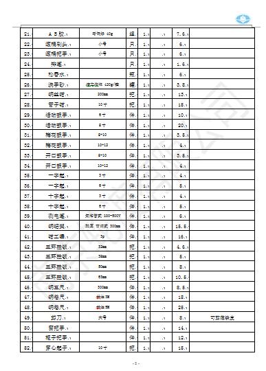 5. 采购清单中生产常用配件,后期采购实施过程中,如遇非清单内材料,参照相似类别酌情采购。