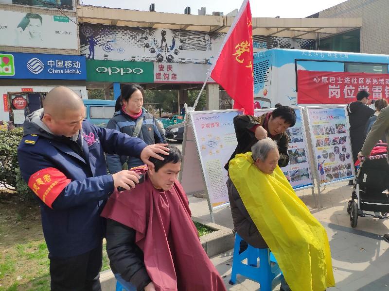 活动现场,大家为社区居民提供咨询、导乘和理发等便民服务,获得市民好评。