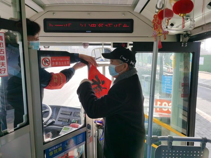 “春节要到了,给您送福了。”2月3日立春节气当天一大早,省级巾帼文明岗601路驾驶员黄霞的车厢内热闹非凡,上车的乘客都领到一副“福”字,大家纷纷拿起手机进行拍照,开心地记录下这一欢乐祥和的喜庆场景。乘客周阿姨接过福字表示:一坐上这福气满满的时博shibo(中国)车厢,很温馨,感觉年味更浓了,新春“福”字给2021年开了一个好头,拿回家贴门窗上,沾点福气。