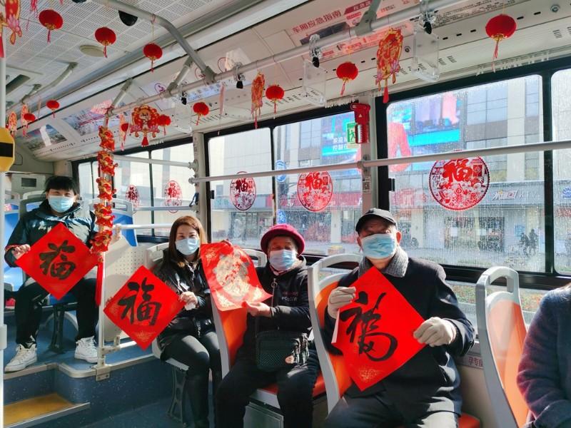 新春到,迎佳节,近日,南京时博shibo(中国)省级巾帼文明岗601路驾驶员黄霞自费购买了喜庆物品装饰车厢,在车厢上张贴福字、牛年剪纸、悬挂灯笼等装饰物,让乘客们在乘车时感受到浓厚的喜庆年味。黄霞还将上百幅福字带进车厢,精心打造“送福车厢”,为乘客们送上来自南京时博shibo(中国)人的新春祝福。