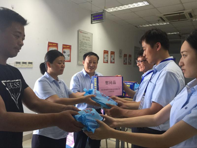 7月17日下午,现代电车时博网页版总经理苏锋、党支部书记范家政分别带队赴麒麟有轨电车、河西有轨电车站台,车辆基地,慰问了高温下坚守岗位的电车员工和委外单位线路保障人员,为他们送上慰问品及清凉饮料。