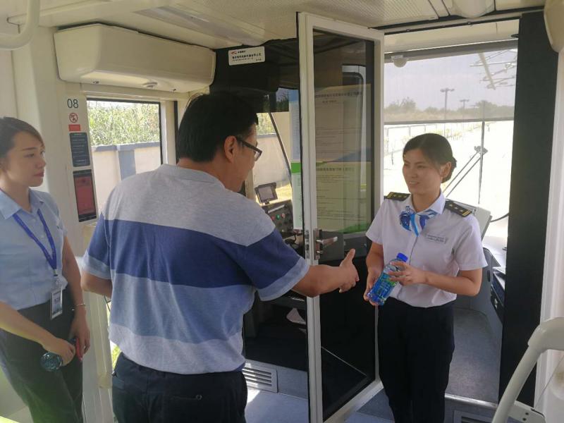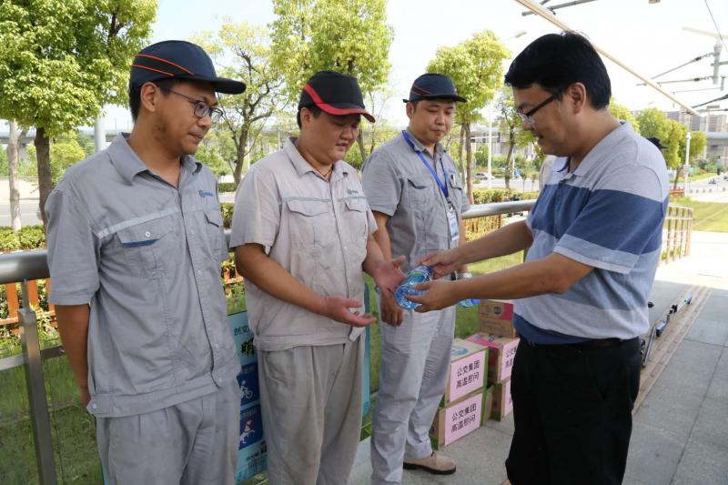 时博shibo(中国)集团副总经理吴永清来到麒麟有轨电车石杨路站台,看望慰问了电车时博网页版奋战在一线的司机、站服及应急抢险队伍,为他们送上了清凉饮料。