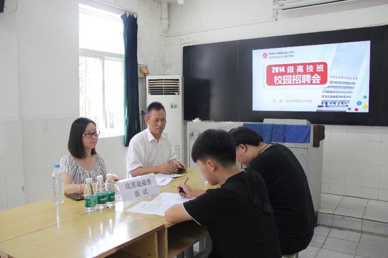 8月14日上午,场站教培中心2018年技能人才校园招聘会在江南校区举行。本次招聘会吸引了比亚迪盛世新景、江苏天泓、江苏万邦、南汽集团等多家用人单位前来招聘,为毕业生提供了多种就业岗位选择。