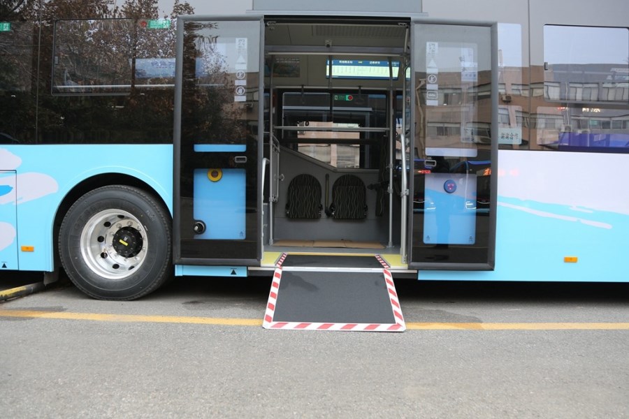 更人性化。此次投入运营的10.5米纯电动车以及12米的过长江二桥的无站立纯电动车均采用低入口车型,配置了具有升降和侧倾功能的ECAS空气悬架电控系统,可极大方便坐轮椅的乘客上车。驾驶员座椅具有电动升降和加热功能并有驾驶员足部采暖装置。有了这个功能,在冬天,可让驾驶员的脚部更灵活、舒适,安全行车更有保障。