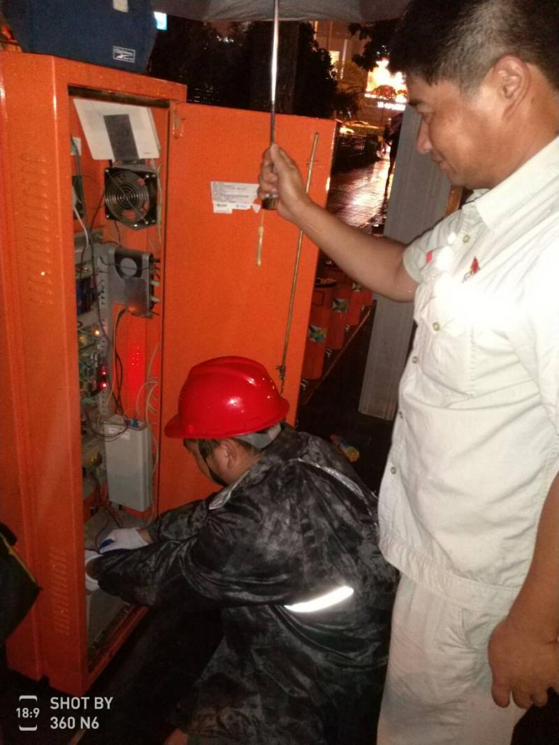 值守人员时刻关注站点汛情,一旦发现积水超过水位警戒线,立刻取出电瓶、关闭站点。