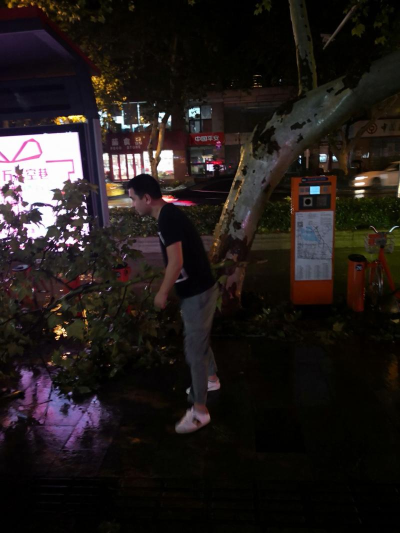 8月17日白天受台风“温比亚”影响,城区迎来大范围强风雨天气。在这样的极端天气里,公共自行车人顶风冒雨,或奔走在站点巡查、或时时坚守在一线岗位。