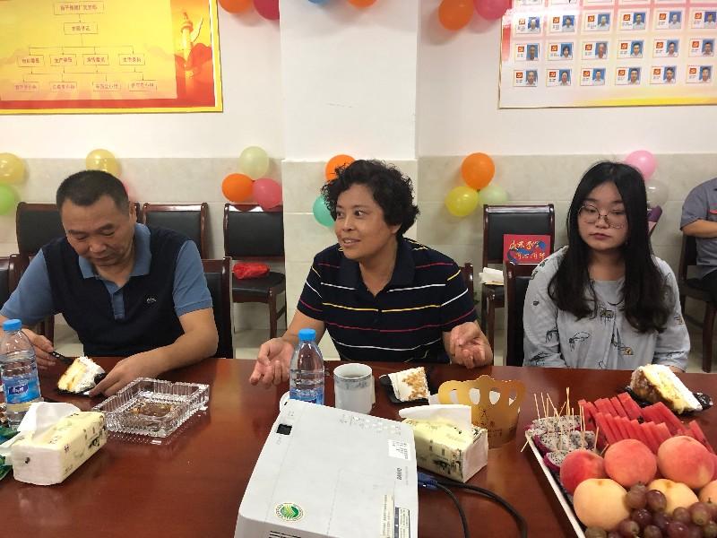 欢送会上,厂领导为孙凤霞披上了绶带和大红花,并送上了鲜花、礼品及记录平日工作点滴的相册。工会工作人员购买了生日蛋糕,并邀请来了孙凤霞的女儿一同为其送上生日祝福。