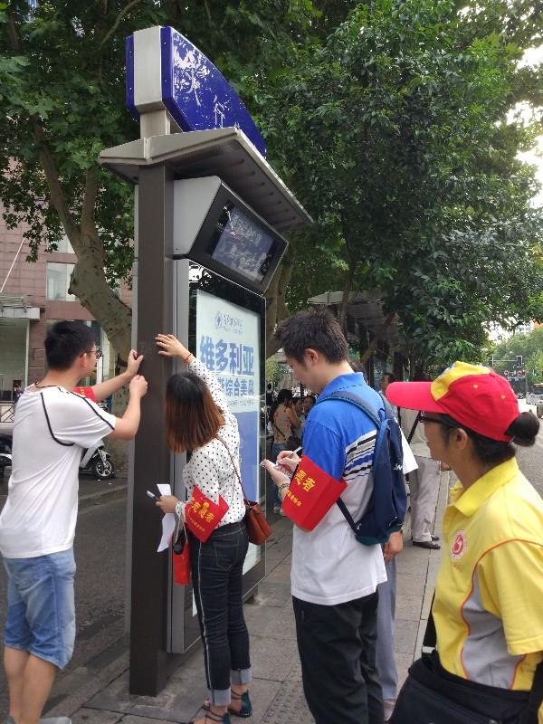 “你们是学生么?这是在做什么?”8月21日下午,中山东路逸仙桥时博shibo(中国)车站边,一位市民好奇地向正在清除站亭小广告的几个年轻人发问,知道事情原委后,市民向他们竖起了大拇指。