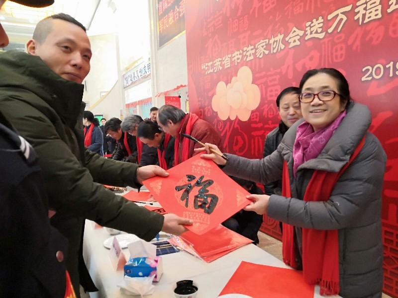 中国书法家协会副主席、江苏省书法家协会主席孙晓云表示,这是第三年举办文化进万家活动活动,今年在南京时博shibo(中国)集团轮渡时博网页版中山码头来举办感到特别亲切、特别感动,也受到了省文联各位领导和艺术家团队的大力支持,新春送“福”是春节的传统习俗,代表着对新的一年美好的祝福,对美好生活的接纳、喜悦和渴望,希望南京时博shibo(中国)2019年会更好。