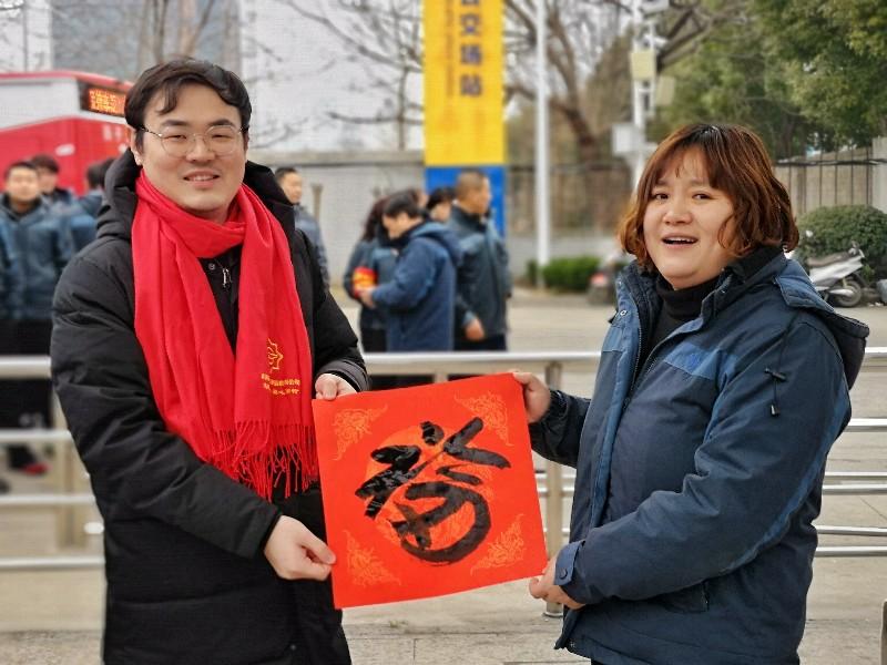 1月28日,扬子时博shibo(中国)工会在柳洲东路场站(地铁三号线3号出口)举办了“文联书画社送福进车队”活动。此次活动邀请了江苏书法家协会会员、青年书法家李泊潭以及扬子时博shibo(中国)文联书画社5位书法爱好者,现场为近百名扬子时博shibo(中国)一线职工代表和广大市民乘客现场赠送“福”字,并送上新春的祝福。